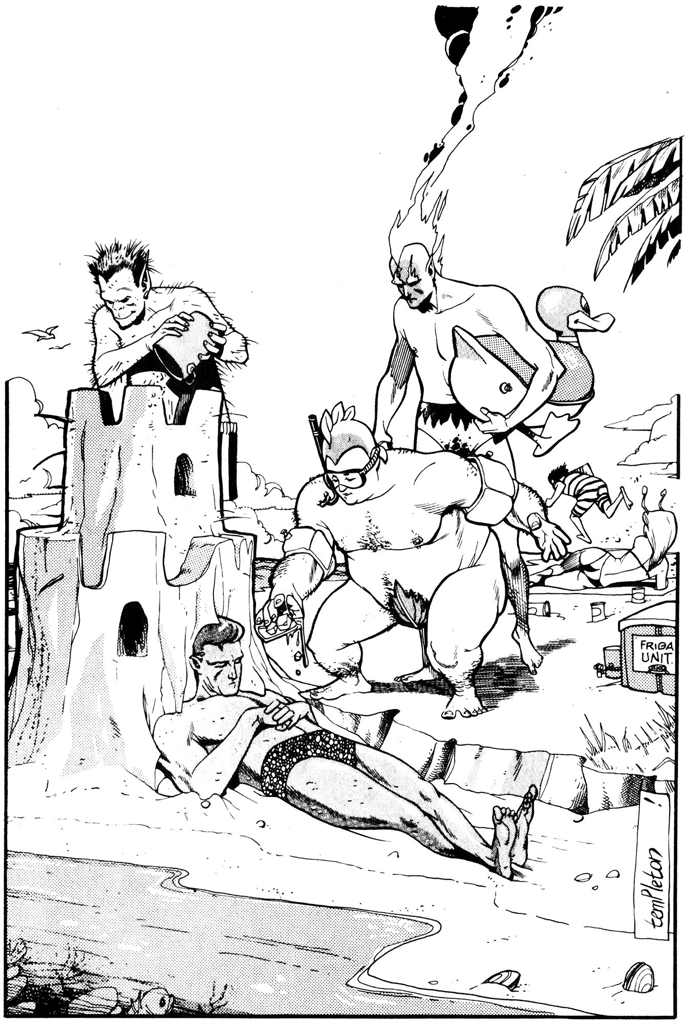 A pinup from the swimsuit issue of Amazing Heroes #138 (1988); art by Ty Templeton.
