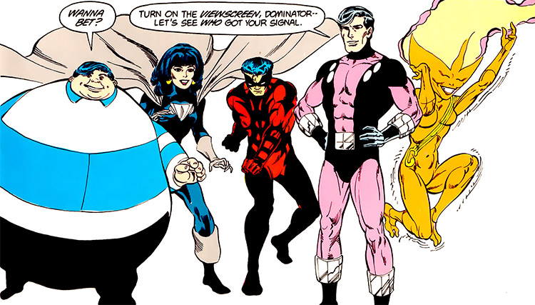 Profile picture includes the new members Infectious Lass, Double-Header, Porcupine Pete and Antennae Boy. from Who's Who: The Definitive Guide of the DC Universe #13 (1985); art by Keith Giffen.
