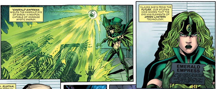 The Empress' Emerald Eye of Ekron is described as a weapon of immense mystic energy, and has elements of Green Lantern technology.