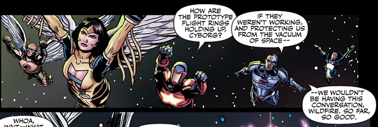 Dawnstar and Wildfire in the Justice League. From The New 52: Future's End #40 (2015); art by Patrick Zircher.