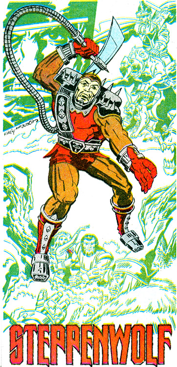 Steppenwolf (New Gods vol. 1 #7). Darkseid's uncle (once killed by Izaya, but revived years later by his nephew) and general of Apokolips' armies. Appearances: