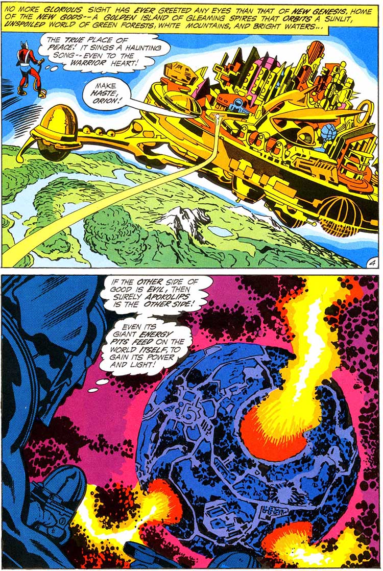 New Genesis and Apokolips. From The New Gods #1 (1971); art by Jack Kirby and Joe Sinnott.