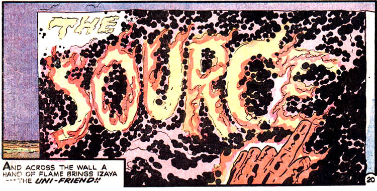 According to writings by Jack Kirby, the Source is "God," in our most Western understanding of the concept — the origin and/or creator of all things and basis of the Life Equation which allows sentient life the freedom to choose its own actions. In the Fourth World, it is the ultimate font of knowledge and enlightenment. It's sometimes portrayed as an energy field (like the Star Wars concept of "the Force").