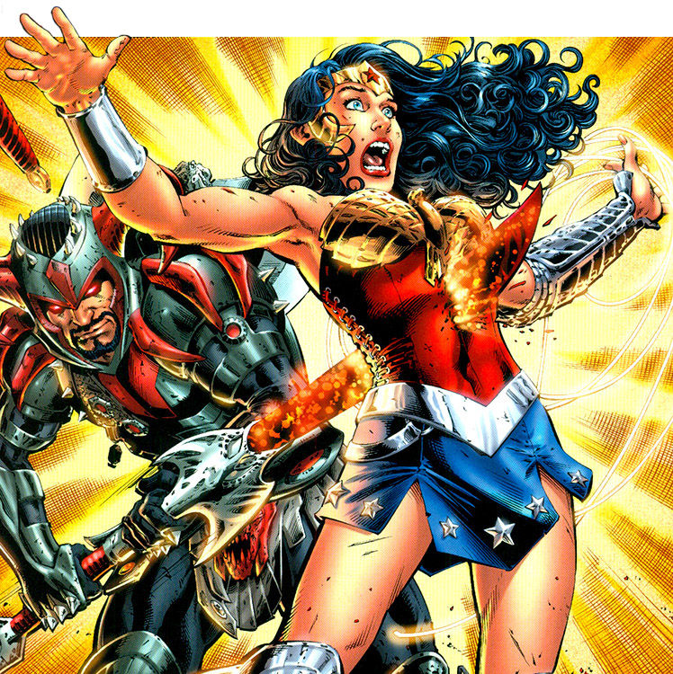 Wonder Woman of Earth-2 spars with the elusive Kaiyo of Apokolips. From Batman/Superman #4 (2013); art by Jae Lee.Death at the hands of Steppenwolf. From Earth 2 #1 (2012); art by Nicola Scott and Trevor Scott.Steppenwolf takes over a nation with the help of his daughter, Fury. From Earth 2 #8 (2013); art by Yildiray Cinar.