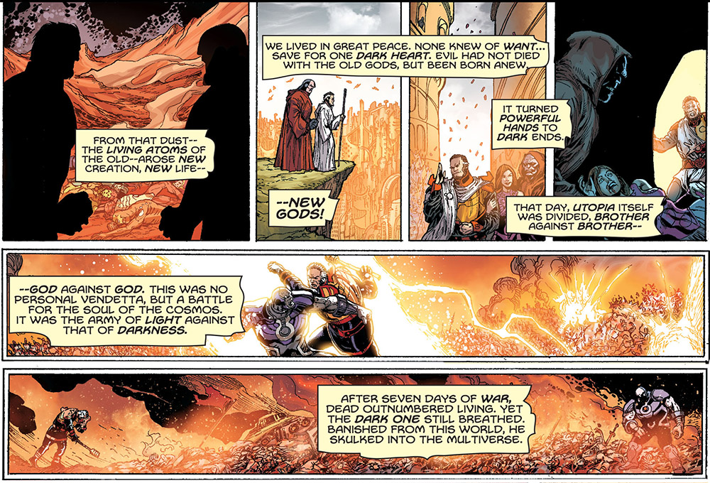 The series was a stage for DC to establish some of the history and principles behind the Fourth World of the New 52. Published in sync with "Godhead," issue #5 gave details about the early days of Apokolips and New Genesis.