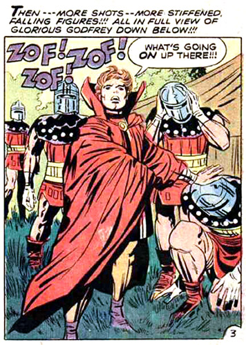 Earth was infested with Darkseid's agents such as Glorious Godfrey, who began a church of sorts. Godfrey did not believe in the Anti-Life Equation. Instead, he practiced a form of mass mind control he called "inventive selling." Godfrey's recruited Earth men as enforcers called Justifiers. Justifiers were willing to become suicide bombers that detonated with Darkseid's Omega energy. They targeted the Forever People and the Infinity Man was brought forth again. But Darkseid himself stepped in and unleashed his Omega Effect to banish the Infinity Man to parts unknown, and the Forever People were captured. (#3)