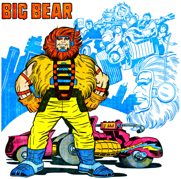 - Big Bear is the powerhouse who becomes impervious by reinforcing his own atomic structure by channeling high density atoms that are around him. He can also use these "free floating atoms" to add density to others, and objects. Big Bear drives their vehicle, the Super-Cycle.