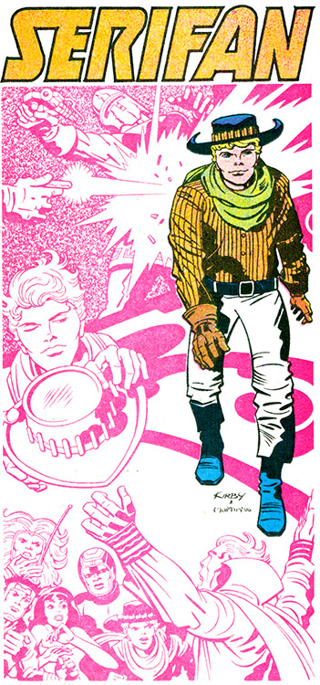 They parted ways with Darkseid, whose true aim remained obscure. Serifan was called upon to help Mister Miracle and Big Barda free the god Odin from the Source Wall (this in preparation to oppose Darkseid). His Cosmic Cartridges succeeded in freeing Odin from the Wall. (Jack Kirby's Fourth World #3)