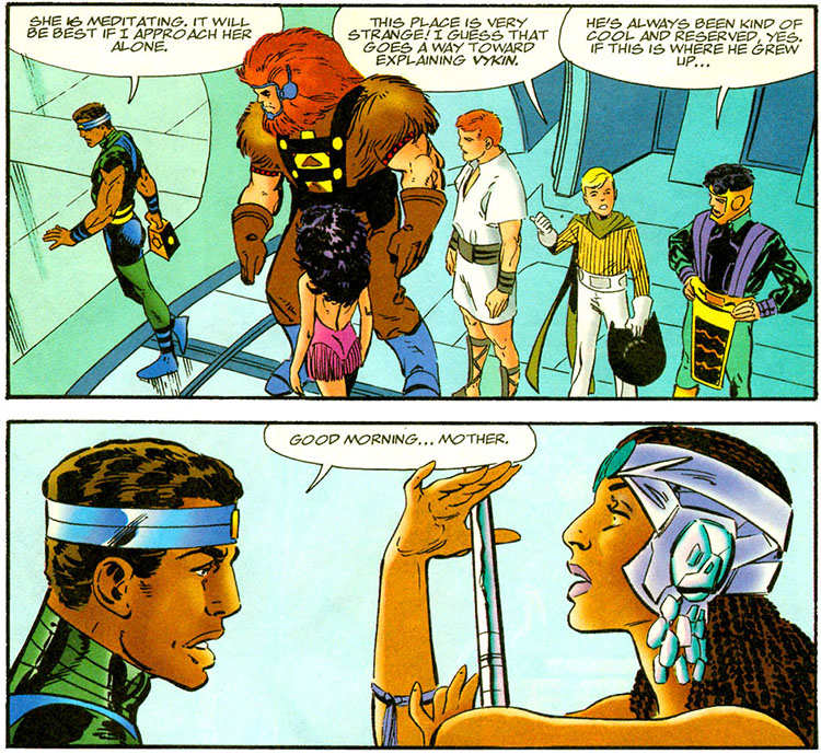 The Dark latched onto Serifan's desire to return to better days, and turned back the clock on Adon. Everything from their time on the planet was erased: Dreamer was no longer pregnant, Mark's family was gone, and Vykin was returned to life. Mark was traumatized to realize his wife and children were gone; likewise Beautiful Dreamer for her unborn child. Meanwhile, their former Mother Box had somehow bonded with the remaining energies of the Infinity Man on Earth and become a new sort of protector named Maya. (#2)