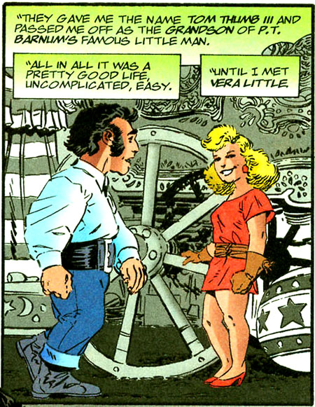 Tom Thumb meets Vera Little in the circus. From Jack Kirby's Fourth World #12 (1998); art by John Byrne.
