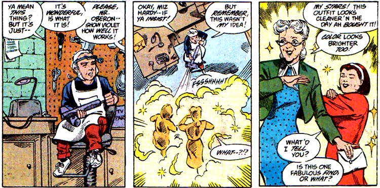 Oberon gets entrepreneurial after discovering the new "Miracle Mister." From Mister Miracle vol. 2 #10 (1989); art by Joe Phillips and Bruce Patterson.