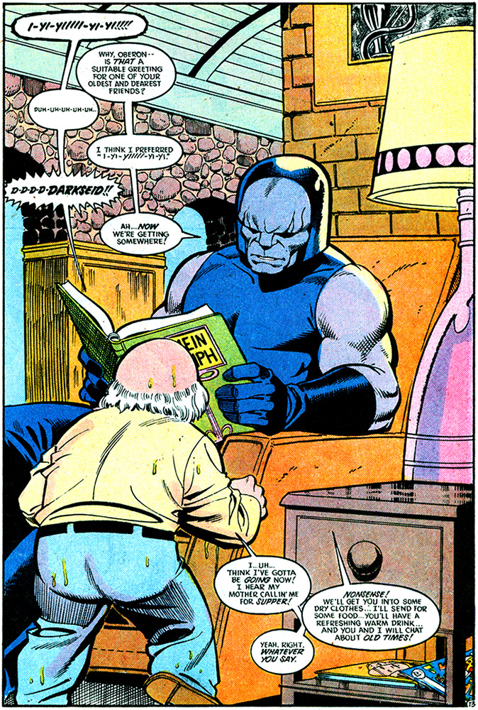 Oberon meets Darkseid. From Justice League International #21 (1988); art by Ty Templeton and Joe Rubenstein.