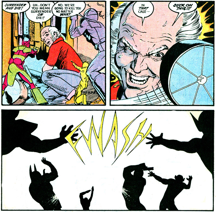 Never afraid to get scrappy. From Mister Miracle vol. 2 #12 (1990); art by Joe Phillips and Art Nichols.