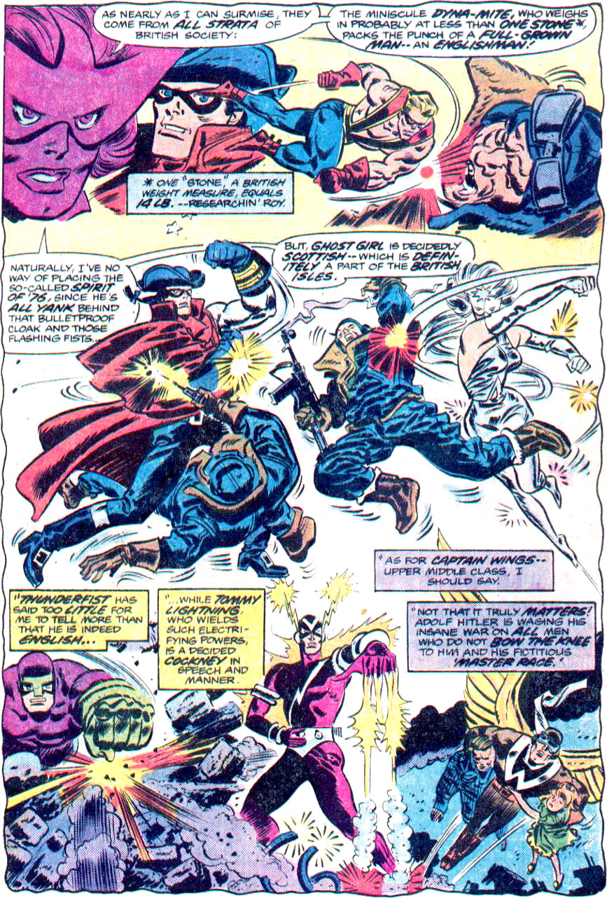 to the Fighting Yank). He also had a cape that was somewhat bullet-proof, but no super-human powers. After the war, the Spirit of '76 was one of