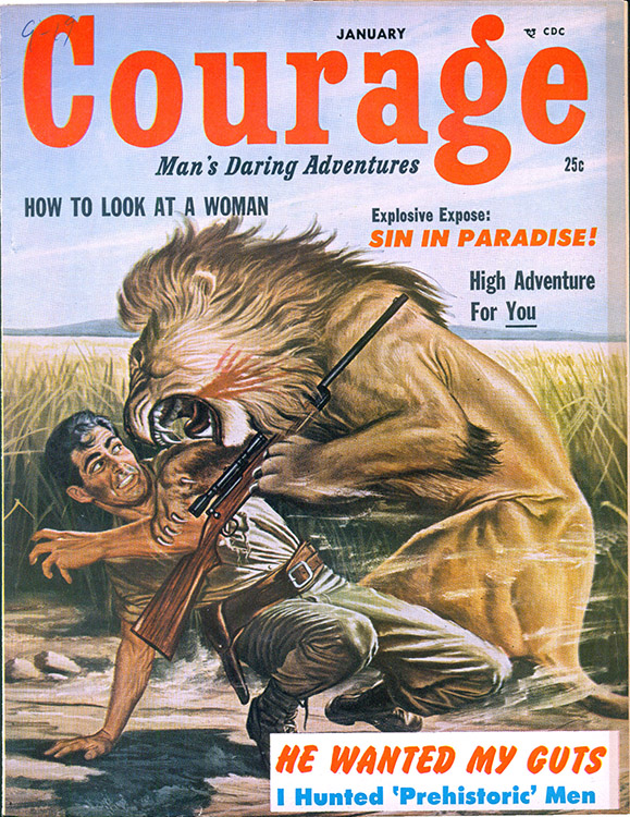 covers, clothed pin-up photos, and he-man articles about hunting, crime,