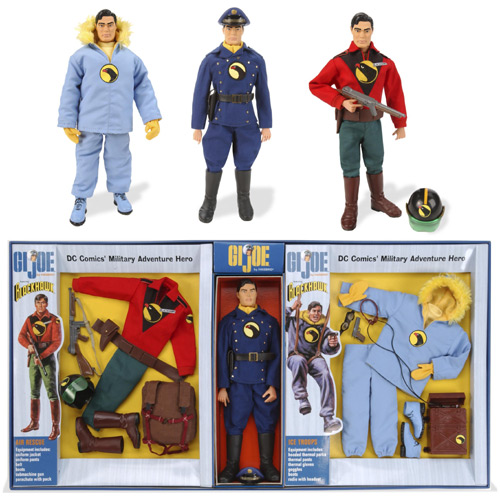G.I. Joe: Blackhawk 12" Figure (2002)This limited edition action figure has a unique hand-painted resin head, never before seen with the 1964 classic G.I. Joe action figure (which features a 21-movable-part body). This deluxe, collectible 12-inch figure comes with highly detailed equipment, two uniform accessory sets and three custom-designed uniforms. Also comes with the timeless 1964-style packaging with box art designed by the renowned Joe Kubert. Figure is numbered on the back of the neck and comes with a Certificate of Authenticity. Note: This item includes one deluxe action figure. Image displays figure dressed in the three included uniforms. |