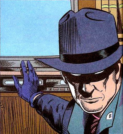 Midnight was reinvented in DC’s Ms. Tree series. This back-up feature was “of its time,” depicting a somewhat grim and ruthless vigilante. This Midnight was perfectly willing to kill if he thought it was justified. Midnight operated from St. Michael’s church, where troubled citizens would light a candle for help, at midnight. If he agreed to take their case, he would appear the following night and hand them his clock-faced calling card—but he never spoke. He didn’t wear a mask, but his fedora cast a mask-like shadow over his eyes. His uniform was less formal than his predecessor: dark casual jacket, pants and gloves, and a striped tie. (Ms. Tree Quarterly #1)