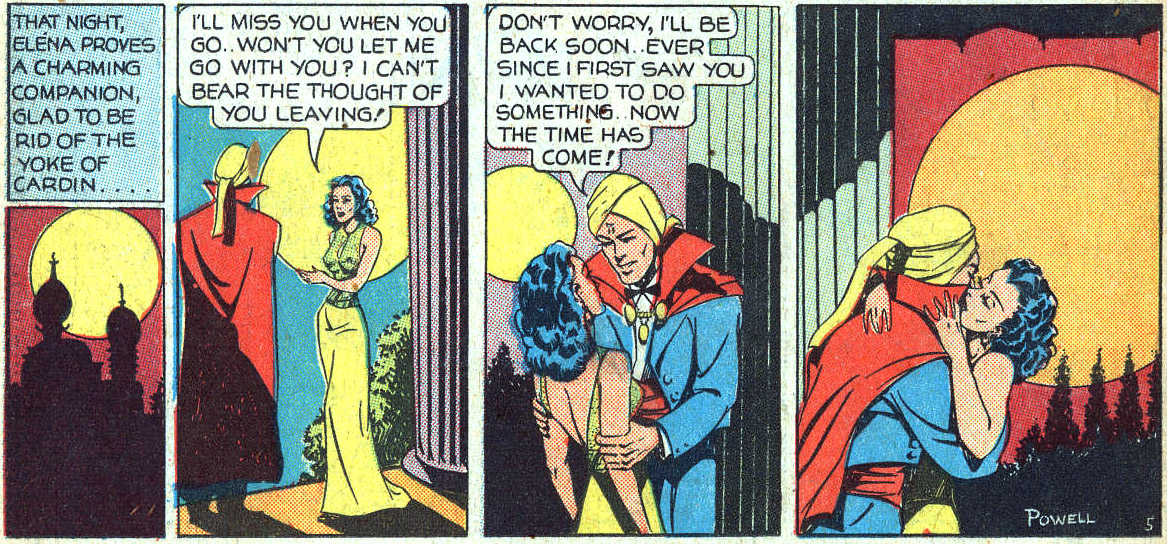 According to Will Eisner, Mr. Mystic’s paramours were reflections of those in Bob Powell’s own life. When Powell got married, Mr. Mystic also settled, on the lovely Penny. (These details come via Cat Yronwode, in Will Eisner Presents, 1990.)