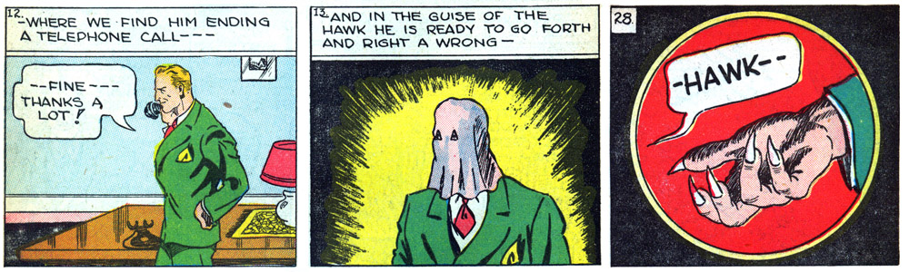 Quality’s first masked hero, the Hawk, from Feature Funnies #2 (1937); art