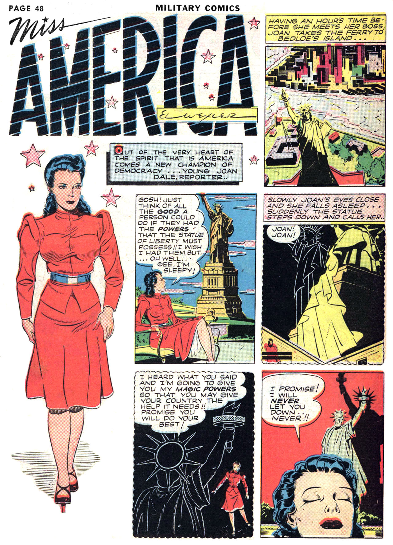 until her fourth appearance. In Military Comics, Miss America was hot-tempered