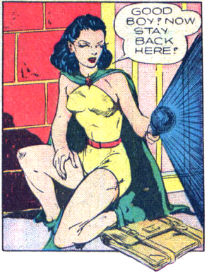 Her briefly-worn mask, from Police #15 (1943); artist uncertain.