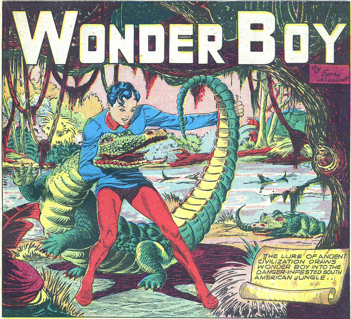 Wonder Boy might have been created by Jerry Iger himself. Iger began his career as a cartoonist and he revived this character twice after the feature ended in National Comics. The Who's Whose? web site credits Toni Blum & John Celardo as creators, which isn’t unlikely; they worked for Iger at that time.
